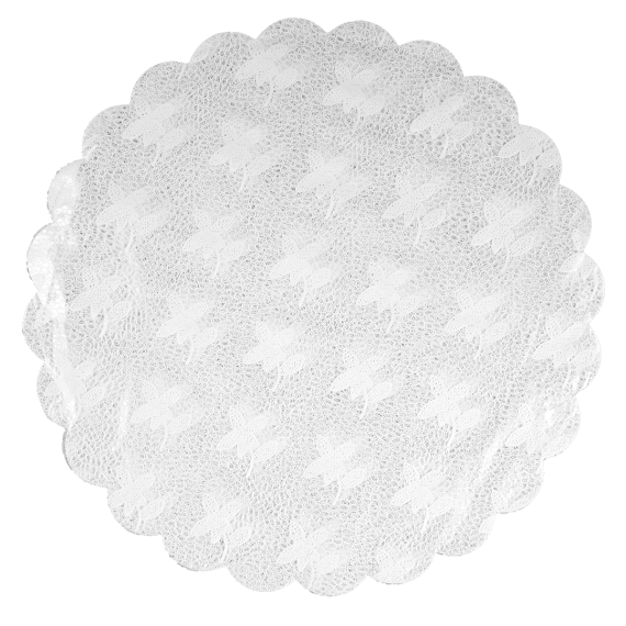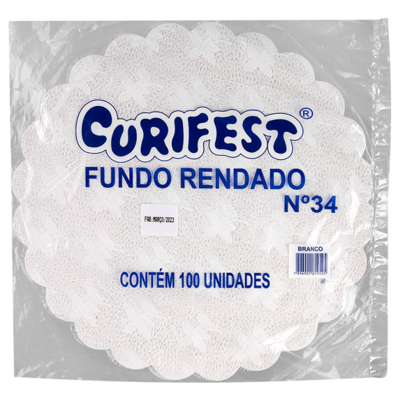 Fundo rendando produzido em polipropileno (PP) e tinta atóxica da marca Curifest, com diâmetro 34cm e contendo 1 unidade por embarque.